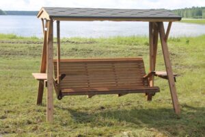 Etusivu / Puutarhakeinut - Pihakeinut / Sami 1-puoleinen puinen pihakeinu / Sami 1-puoleinen puutarhakeinu ruskea katoksella